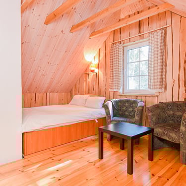 Tradicinė tvarkinga pirtelė, turinti iki 10 miegamųjų vietų ir rusišką pirtį.